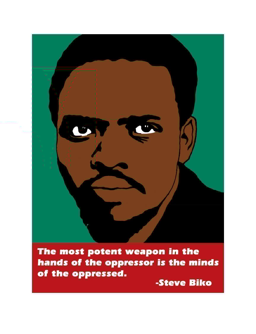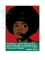 A set of four 6 x 8 inch prints that include portraits and quotes from El-Hajj Malik El-Shabazz (Malcolm X), Assata Shakur, Angela Davis and Steve Biko. This set of mini-prints celebrates visible figures in the Black Power movement and offers gems of wisdom from their speaking/writing. The prints are only available as a set in this size.