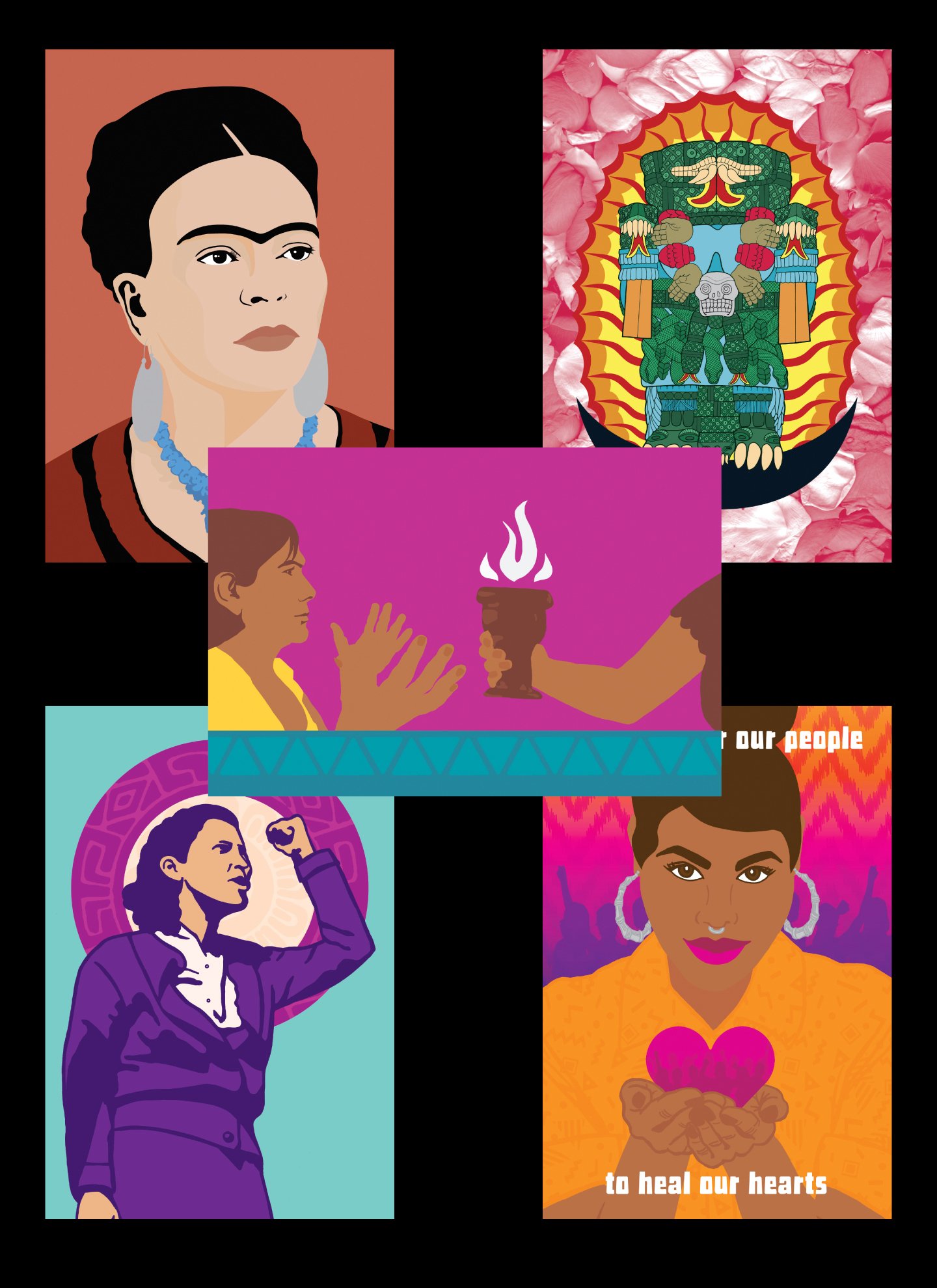 Set of five postcards. Each measures 4" x 6". In the set you will receive one card of each of the following designs: