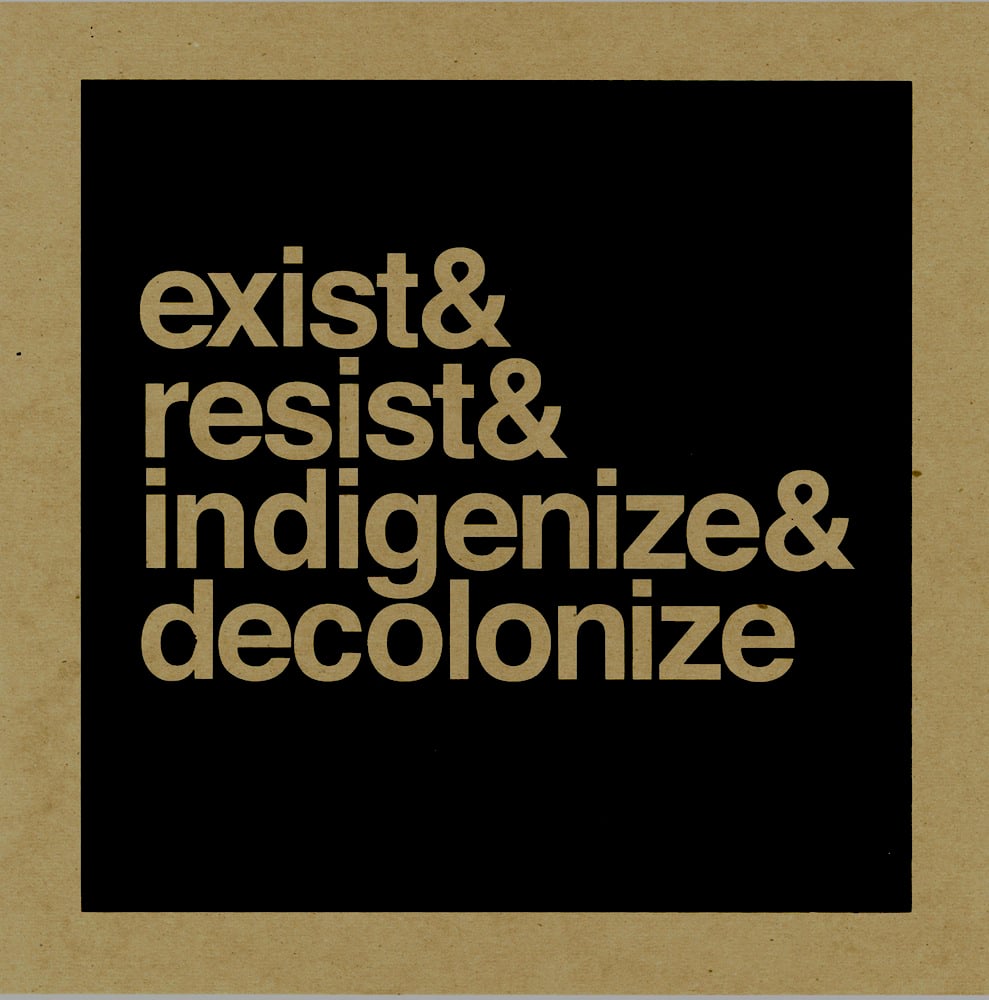 The shirts emblazoned with lists, ampersands and text in Helvetica (and sometimes other fonts) are ubiquitous. In 2001 an Amsterdam design studio designed a t-shirt with the first names of the members of the Beatles for a Japanese t-shirt label and much like memes the design strategy spread like wildfire with most people relatively unaware of the origins of the style. I decided I wanted to put my own spin on the trend by grouping together four words that I felt could be shorthand for an indigenous perspective, identity and politic. It was initially a playful meme I quickly typed up and my computer and overtime due to the overwhelming response of communities evolved into multiple formats of art. My initial statement that accompanied the graphic was short and a bit tongue-in-cheek: