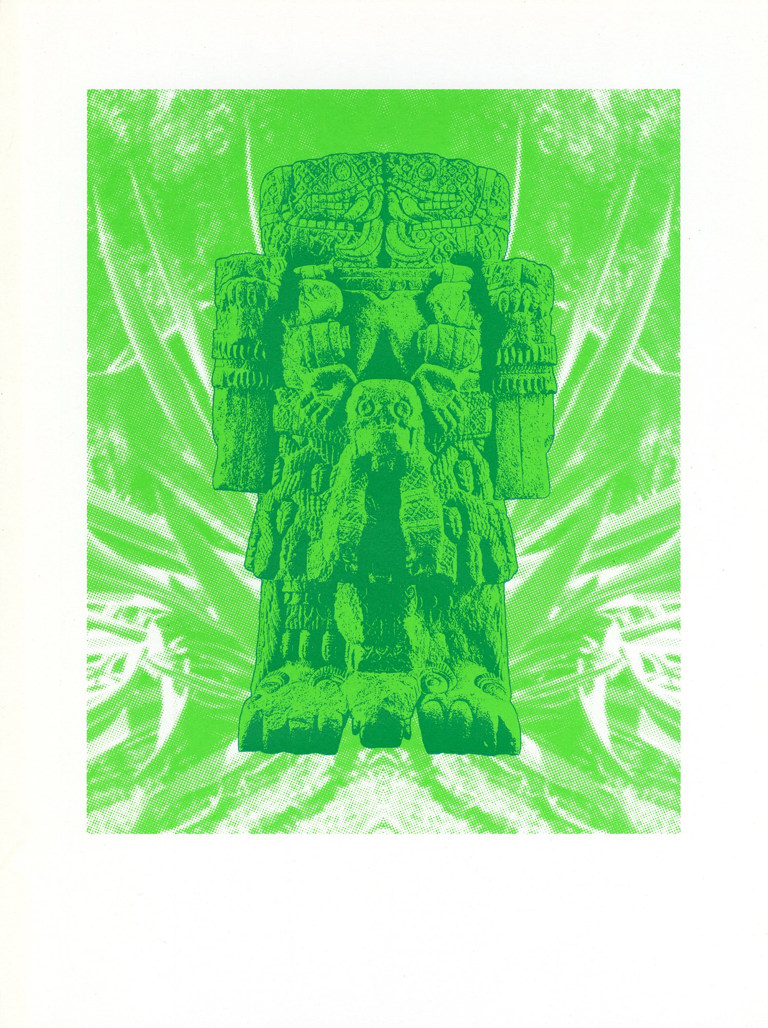 I made this print of Coatlicue to honor that ancient energy that gave us life and continues to hold us and keep us connected to the earth that takes care of us. Keeping this connection alive is especially important in our time as the earth is under attack by corporations who are destroying it for profit and forgetting that there are generations following after they are gone. But as protectors we remember and keep struggling.