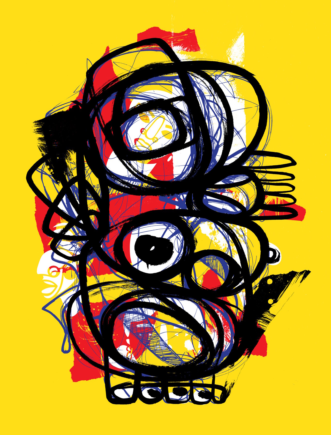 4-Color poster, Handprinted Screenprint on Mr French Yellow Archival Paper, Printed in Oakland, California, 2013
