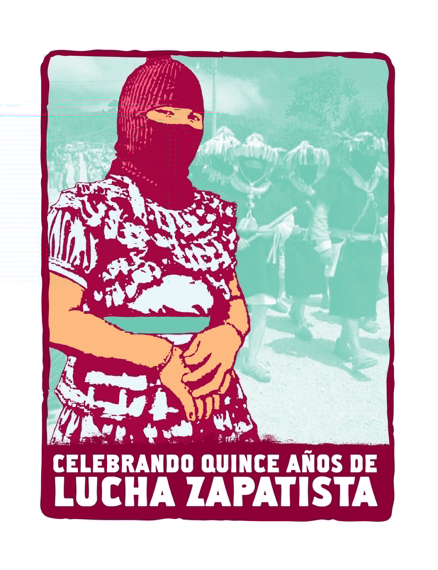 15 years ago, on New Years day the EZLN declared war on the Mexico taking over the town of San Cristobal de las Casas in Chiapas in an attempt to start a revolution in Mexico. In the face of the North American Free Trade Agreement the Zapatistas took up arms against the Mexican government with the aim of taking President Carlos Salinas de Gortari and the PRI out of power to restore legitimacy and stability to Mexico. This poster was created to commemorate the struggle of the Zapatistas and their perseverance to create a world where many worlds fit.