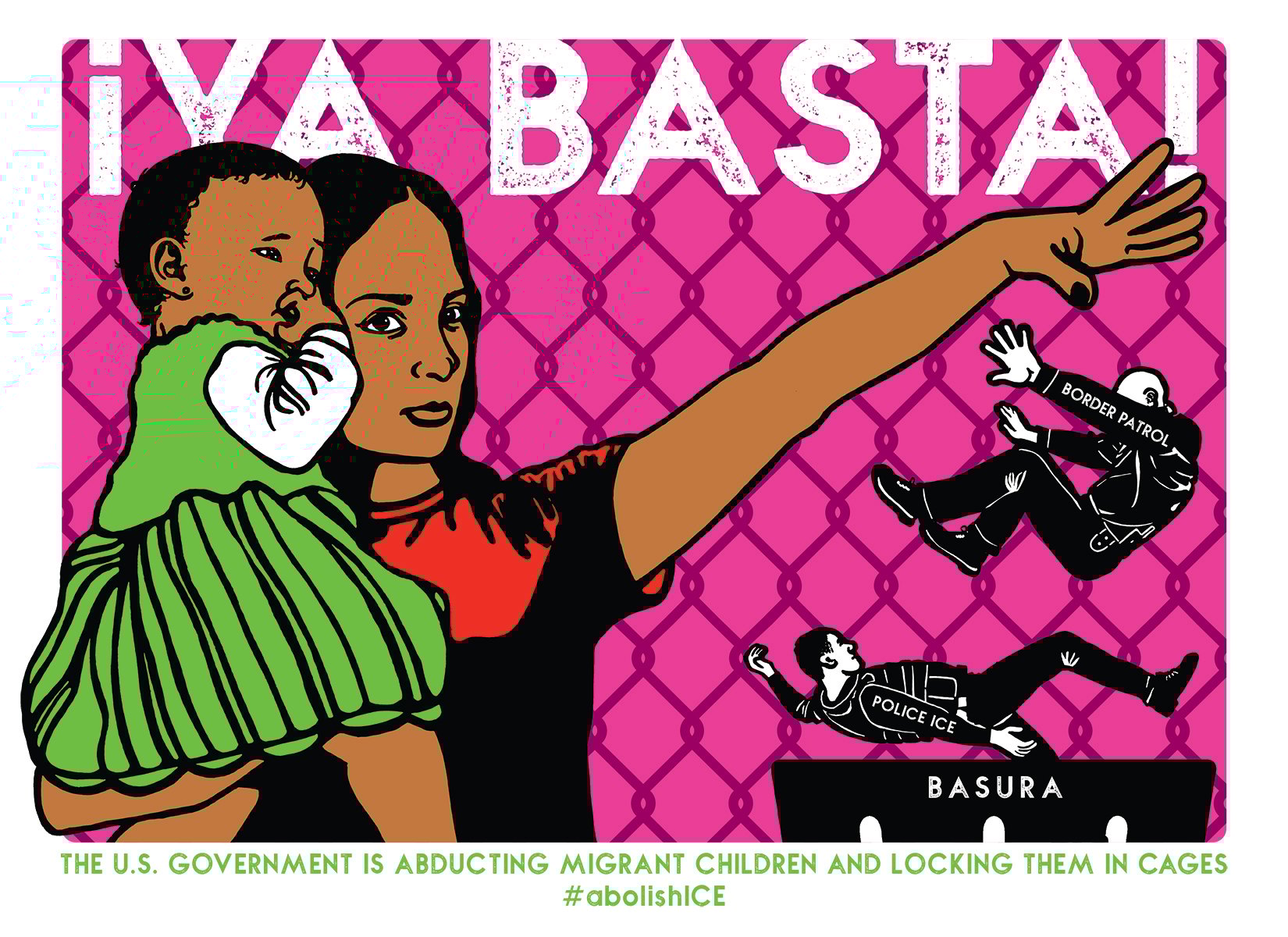 This poster was the first piece I created for a political issue since I had lung cancer surgery. In my recovery I realized I could accomplish my vision by working in community. I realized together we can accomplish anything. Eight of us worked together to start printing 250 posters to get out to community organizations, spaces, businesses and resistance efforts who are calling to end Trump’s zero tolerance policy, end all detentions and deportations and abolish ice.